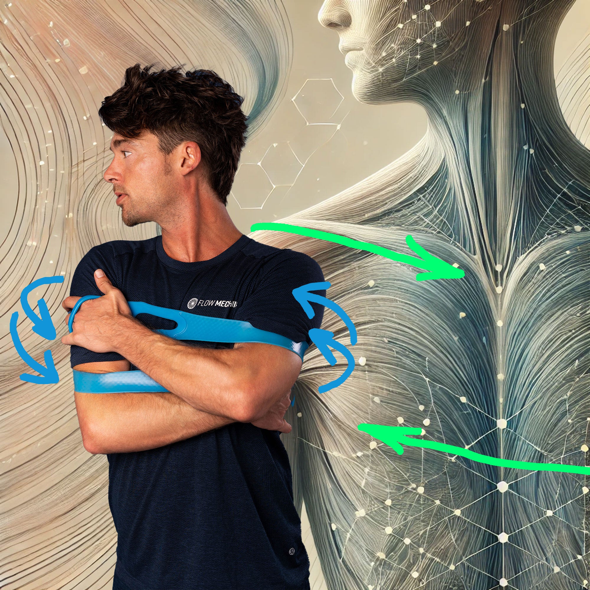 The flow band can help improve fascial flow by compressing and stretching the fascia to cleanse stagnancy and activate new tissue growth.
