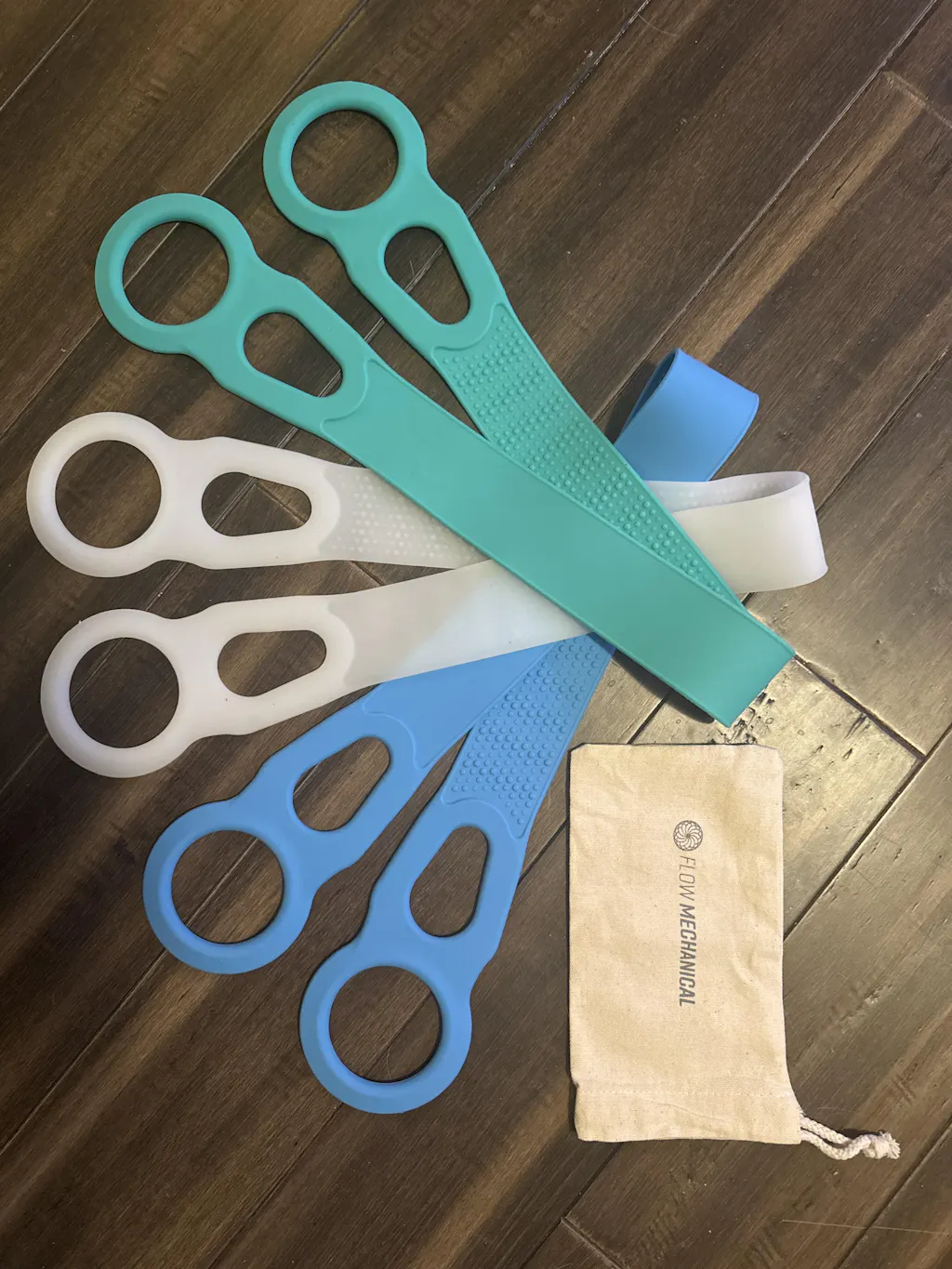 Flow Bands can be used for gentle self-massage, mobility, stretching, and variable resistance training. One tool adapts to warm-ups, recovery, or full movement sessions that test strength and expressive movement.